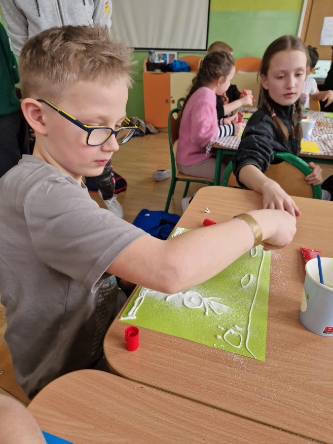 Po powrocie przyszedł czas na wyjątkowe prace plastyczne. Malowanie solą okazało się prawdziwym hitem!
