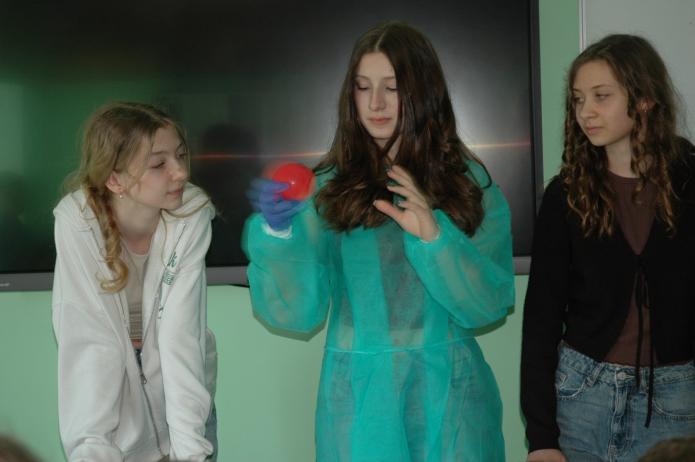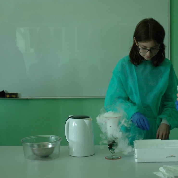 W sali przyrodniczej uczniowie eksperymentowali z suchym lodem 🧊 – nauka połączona z efektownym pokazem chemicznym dostarczyła wielu emocji.