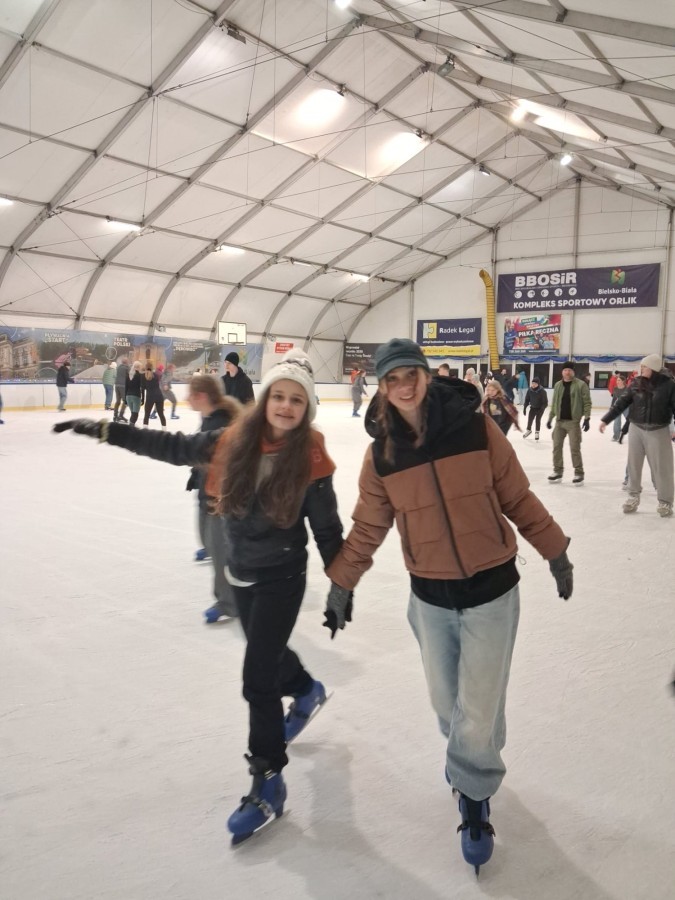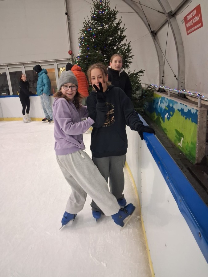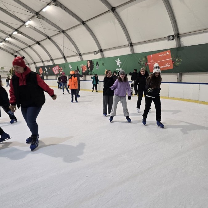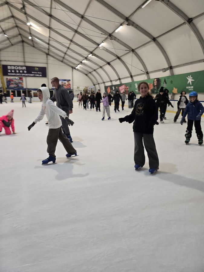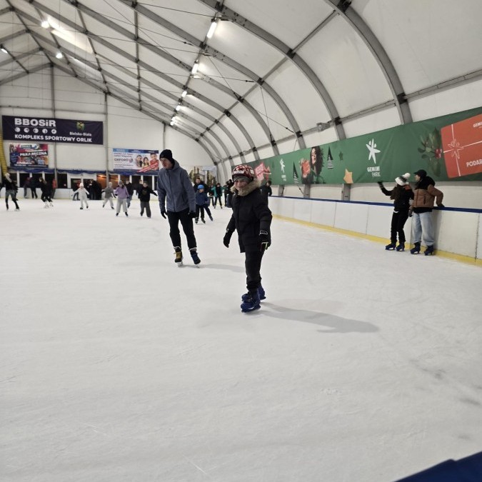 Na lodowisku było dużo śmiechu, bo niektórzy po raz pierwszy mieli łyżwy na nogach. Nie obeszło się bez upadków, ale nikt się nie poddał.