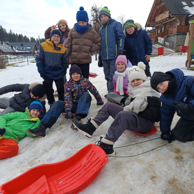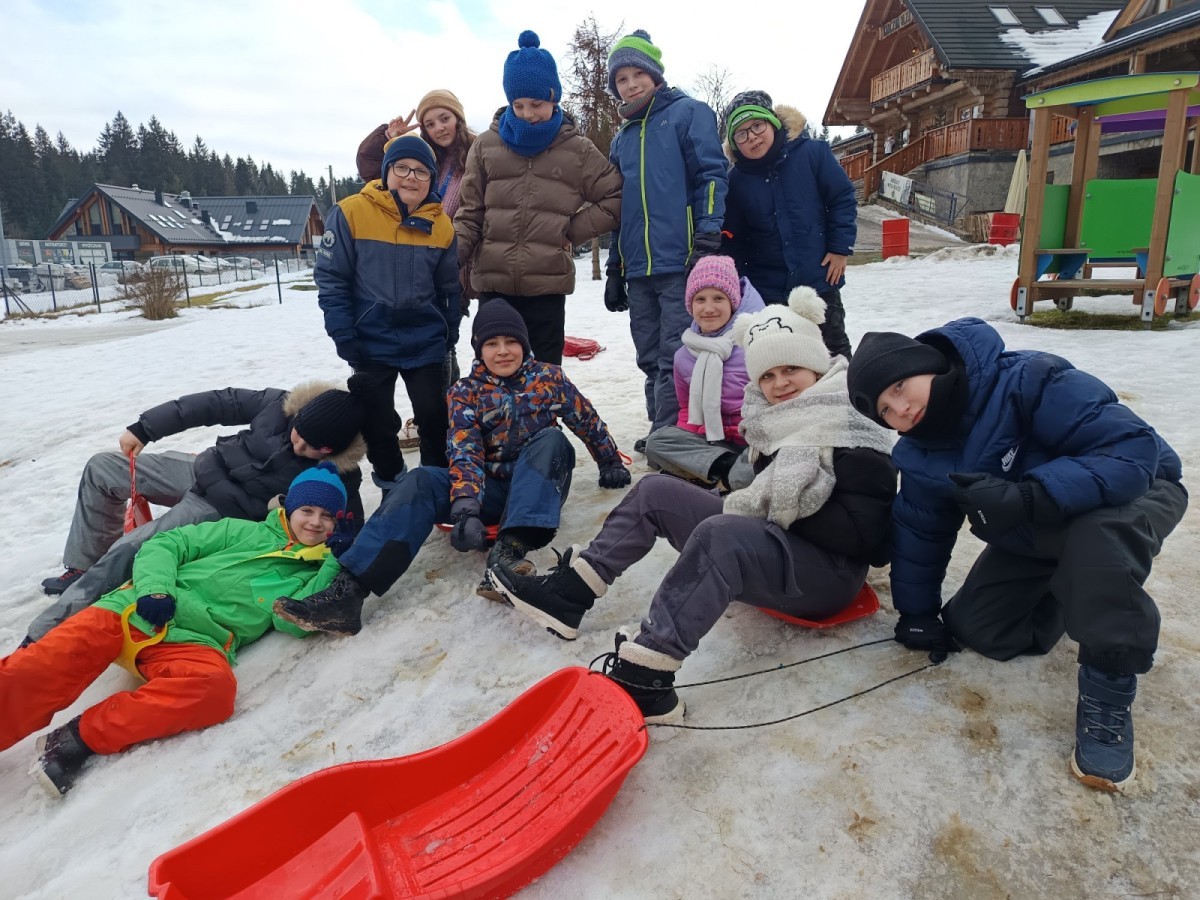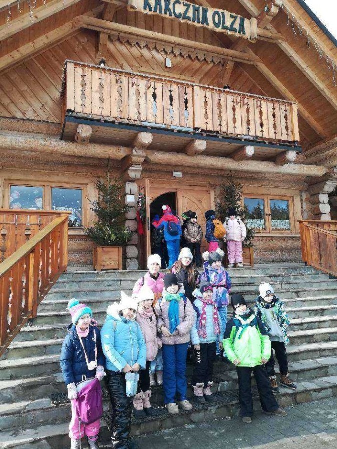 Uczniowie klas 2c, 3b, 3c i 4b wybrali się na zimową przygodę do Istebnej! Naszym celem była Karczma Olza na Złotym Groniu, gdzie czekała na nas prawdziwie górska atmosfera.