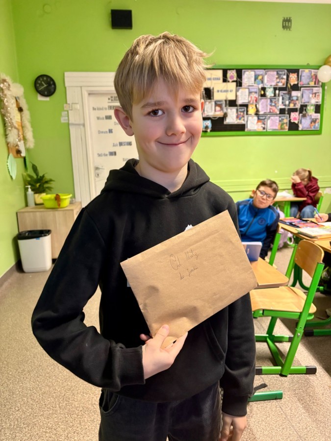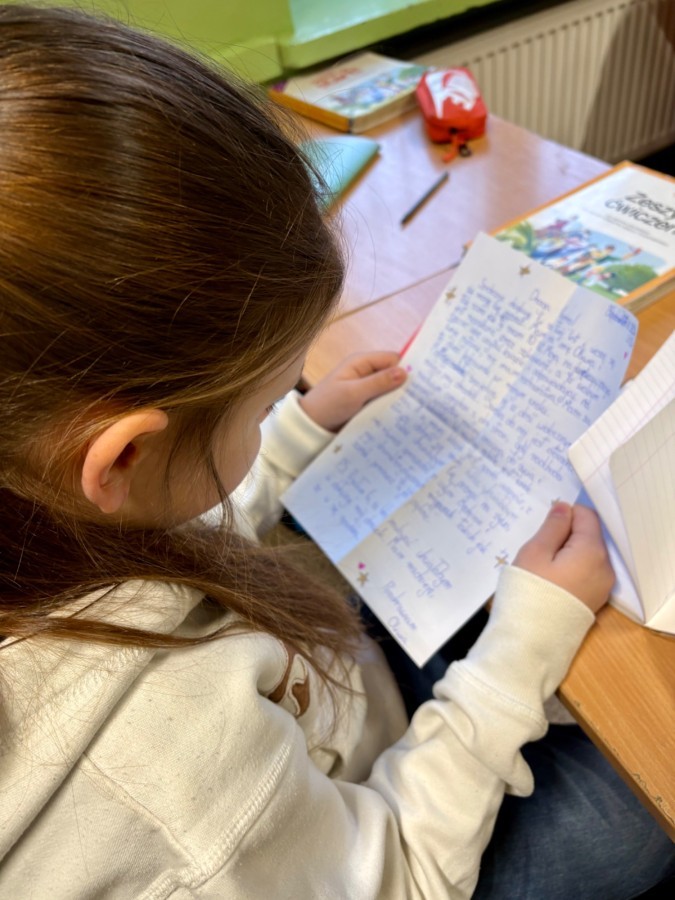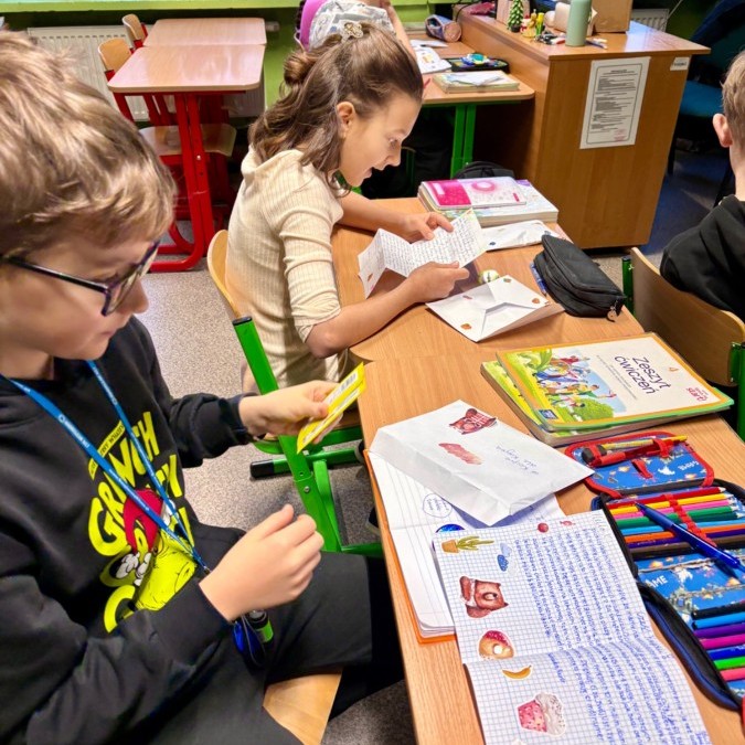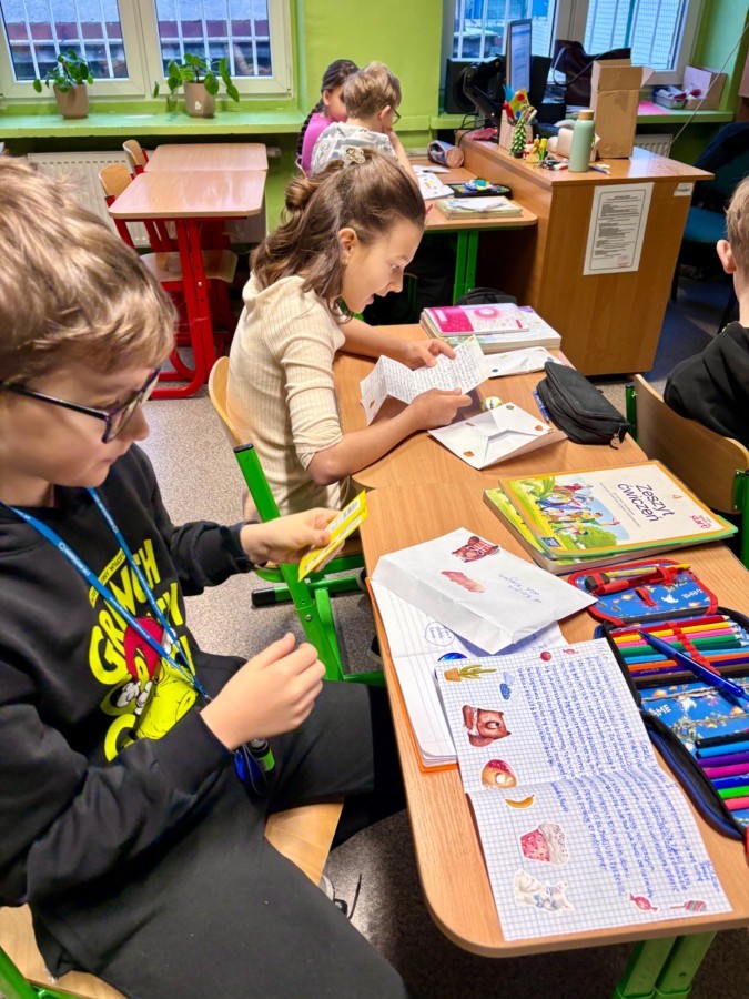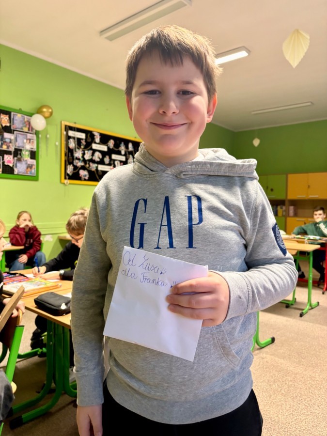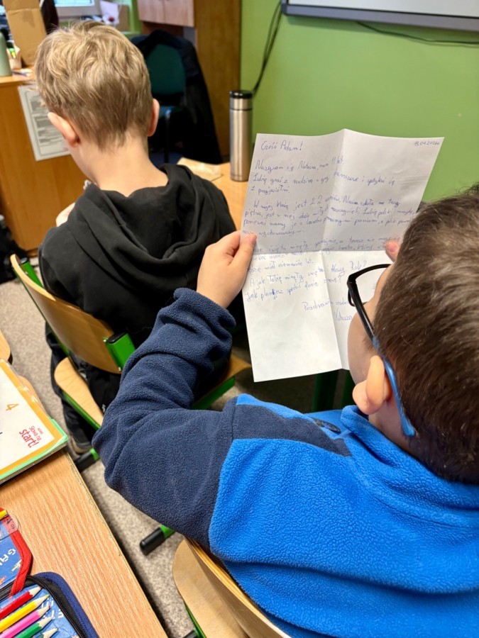 Na poniedziałkowej lekcji uczniowie klasy 4b otrzymali listy od swoich kolegów i koleżanek ze szkoły w Będzinie, do których pisaliśmy w grudniu. Każdy z naszych czwartoklasistów miał możliwość przeczytać i dowiedzieć się nieco o tym, jak wygląda nauka w innej szkole, jakie są ulubione przedmioty dzieci i jakie są ich zainteresowania i pasje. Każdy z uczniów otrzymał także drobny upominek, a listy były pięknie ozdobione i pokolorowane.