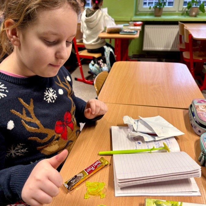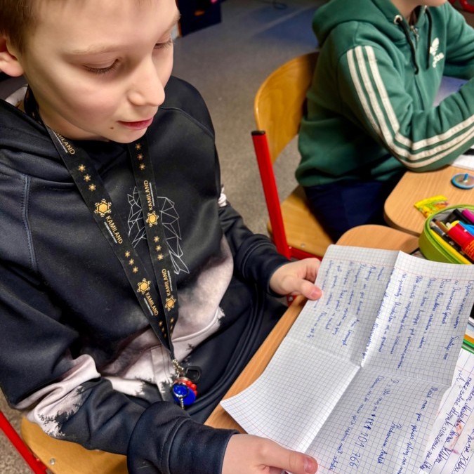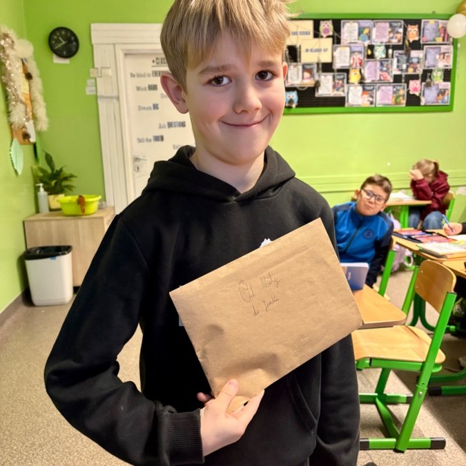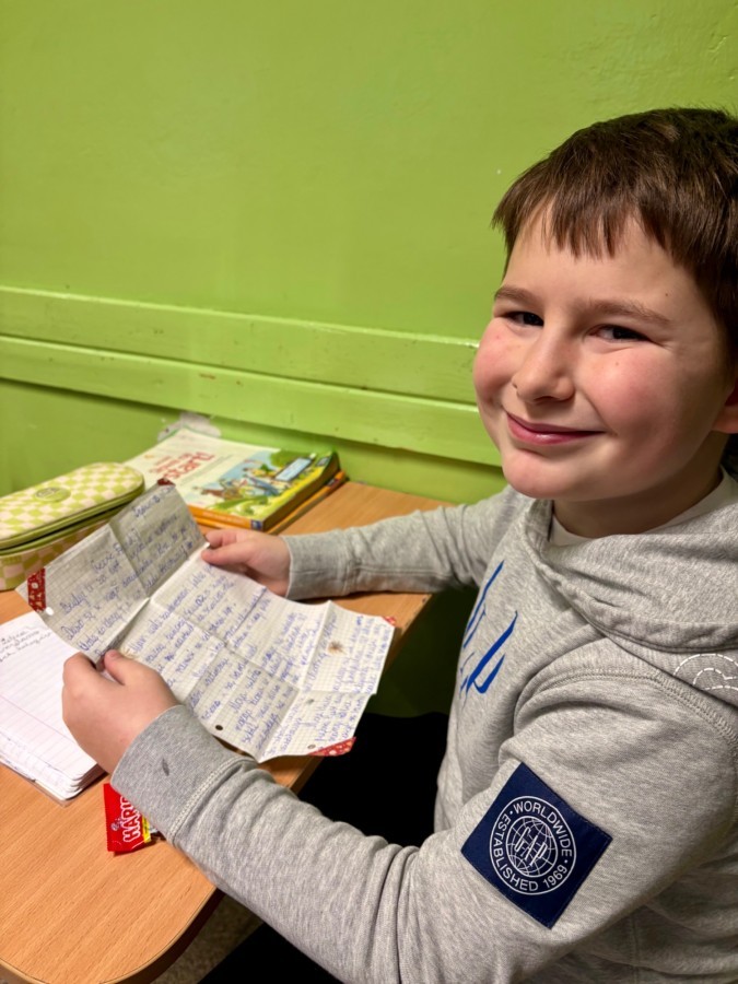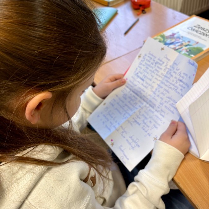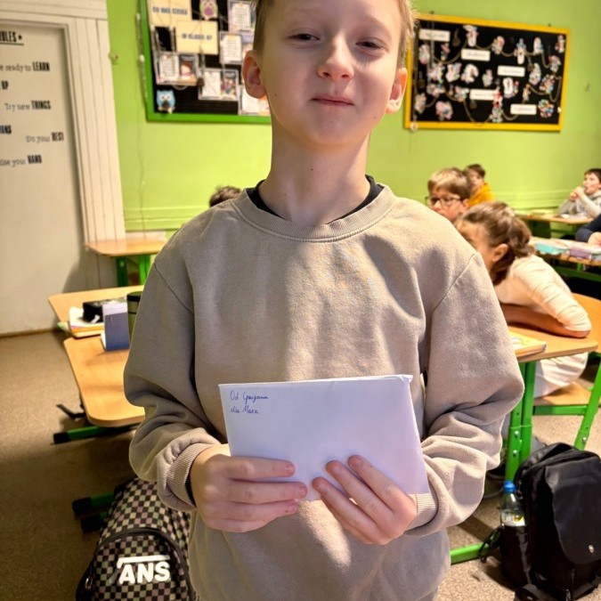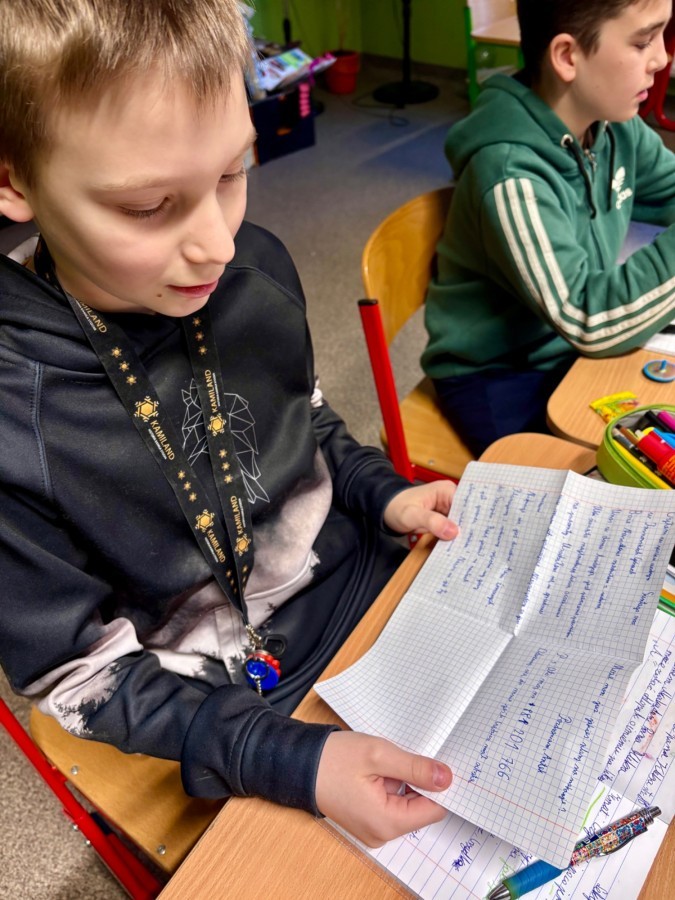 Na poniedziałkowej lekcji uczniowie klasy 4b otrzymali listy od swoich kolegów i koleżanek ze szkoły w Będzinie, do których pisaliśmy w grudniu. Każdy z naszych czwartoklasistów miał możliwość przeczytać i dowiedzieć się nieco o tym, jak wygląda nauka w innej szkole, jakie są ulubione przedmioty dzieci i jakie są ich zainteresowania i pasje. Każdy z uczniów otrzymał także drobny upominek, a listy były pięknie ozdobione i pokolorowane.