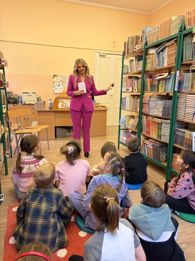 Uczniowie klasy 1a zostali oficjalnie przyjęci do grona czytelników biblioteki podczas uroczystego pasowania. Zanim złożyli przyrzeczenie, zapoznali się z regulaminem biblioteki, zasadami wypożyczania książek oraz "prośbami książki". Każdy pierwszoklasista otrzymał w prezencie „Pierwsze abecadło”, przekazane szkole przez Instytut Książki w ramach kampanii „Mała książka – wielki człowiek” oraz zakładki do książek.