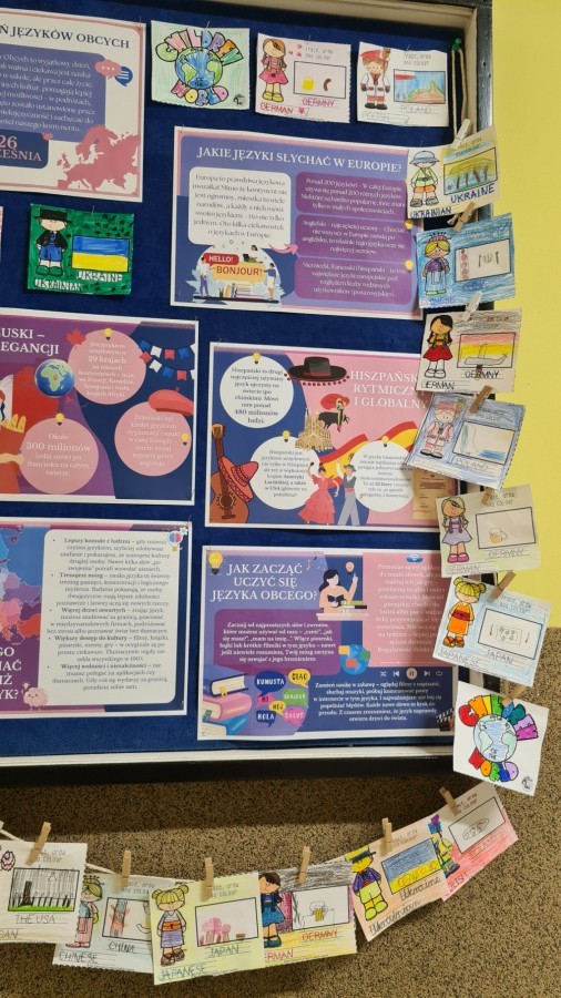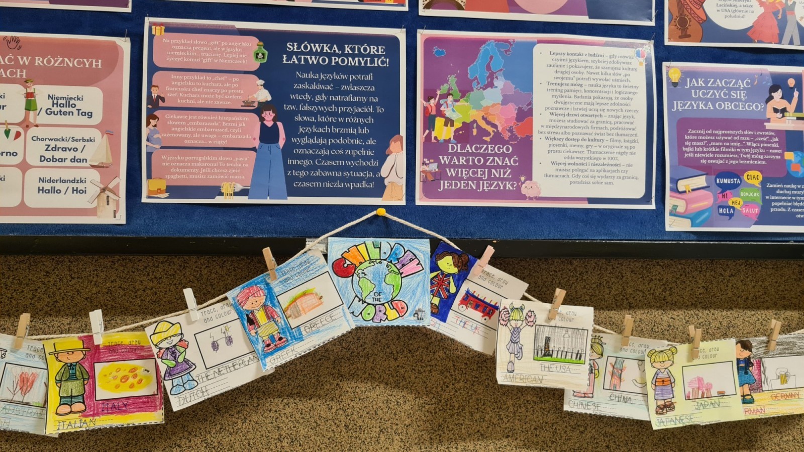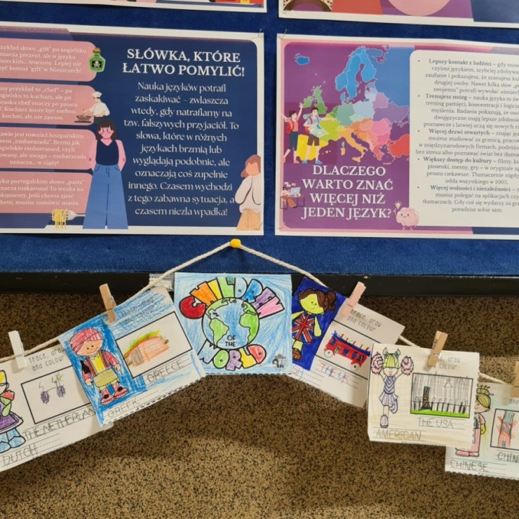 Uczniowie klas 2c, 3b oraz 3c wykonali girlandy ozdabiające naszą prezentację na temat języków obcych. Children of the World - Dzieci Świata - oto temat ich pracy, która była okazją do wymiany wiedzy na temat różnych krajów, ich języków i tradycji oraz rozmowy na temat tolerancji i szacunku dla odmienności. Dziękujemy najmłodszym uczniom za piękne i pomysłowe prace!