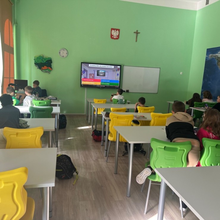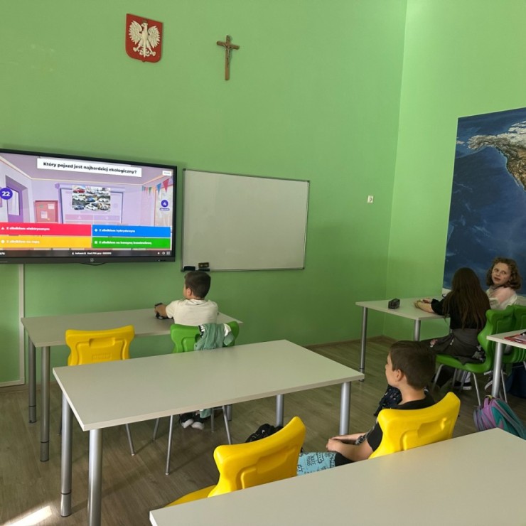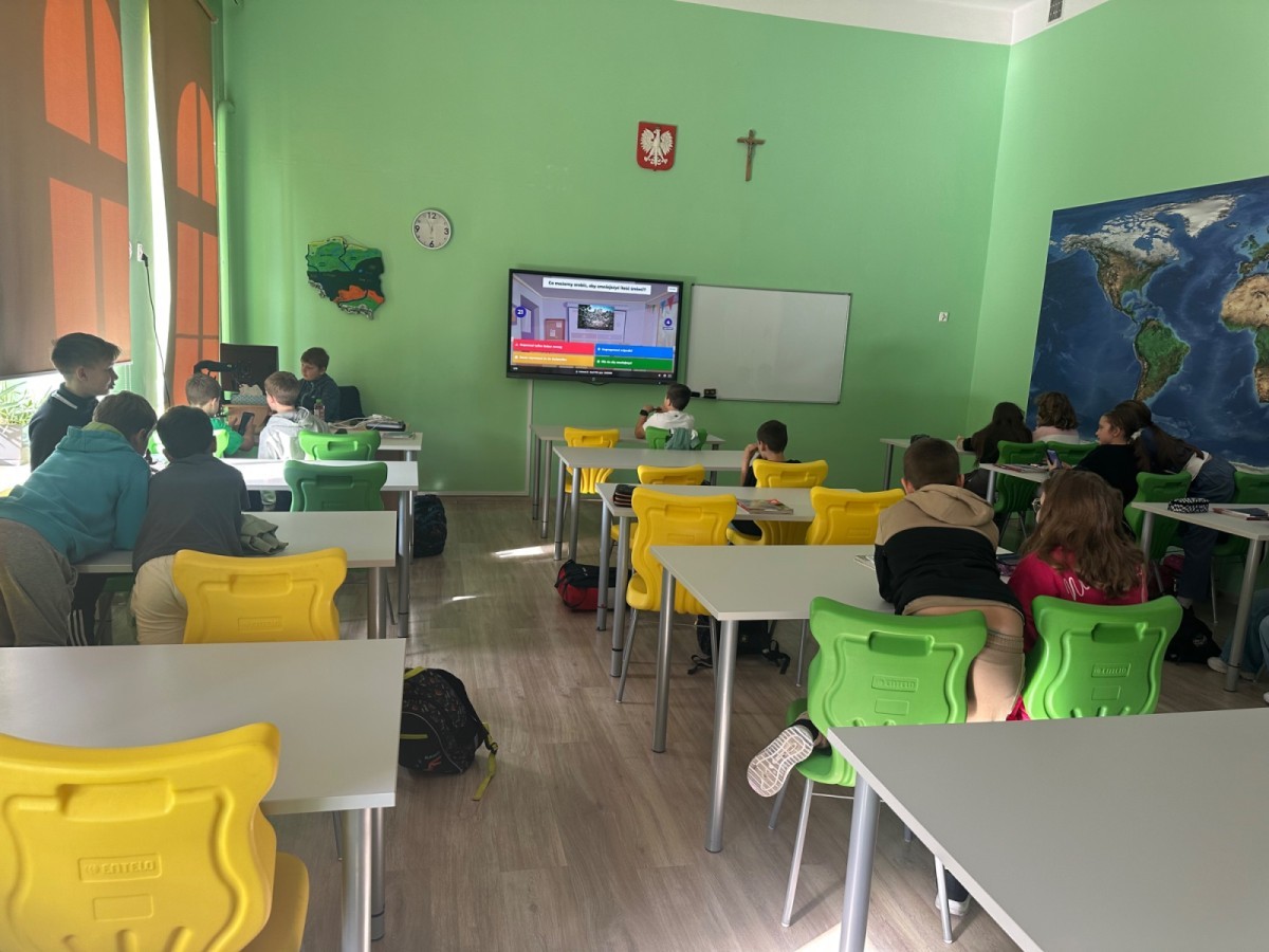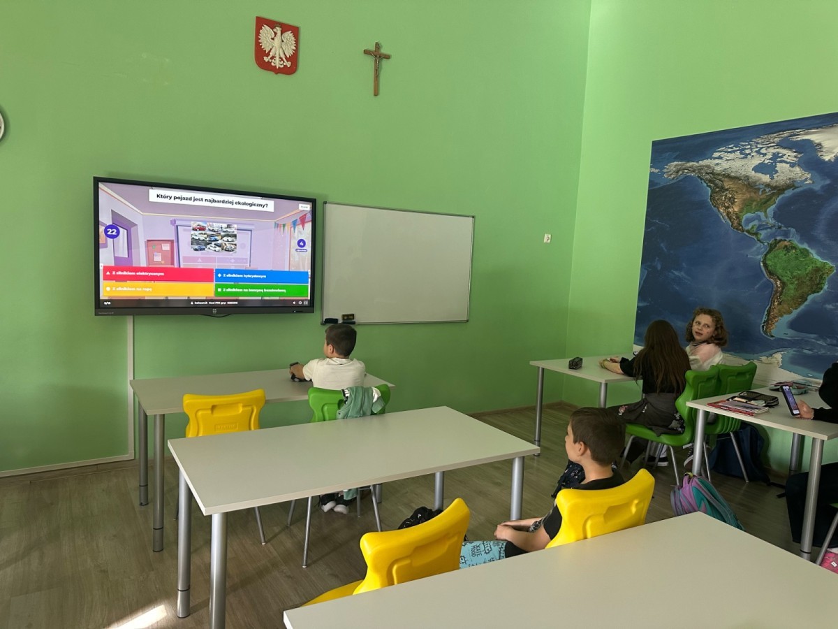 Uczniowie z zaangażowaniem rozwiązują quiz ekologiczny w ramach konkursu "Szanuj energię, chroń klimat". To nie tylko sprawdzian wiedzy, ale też ważny krok ku świadomemu dbaniu o naszą planetę.