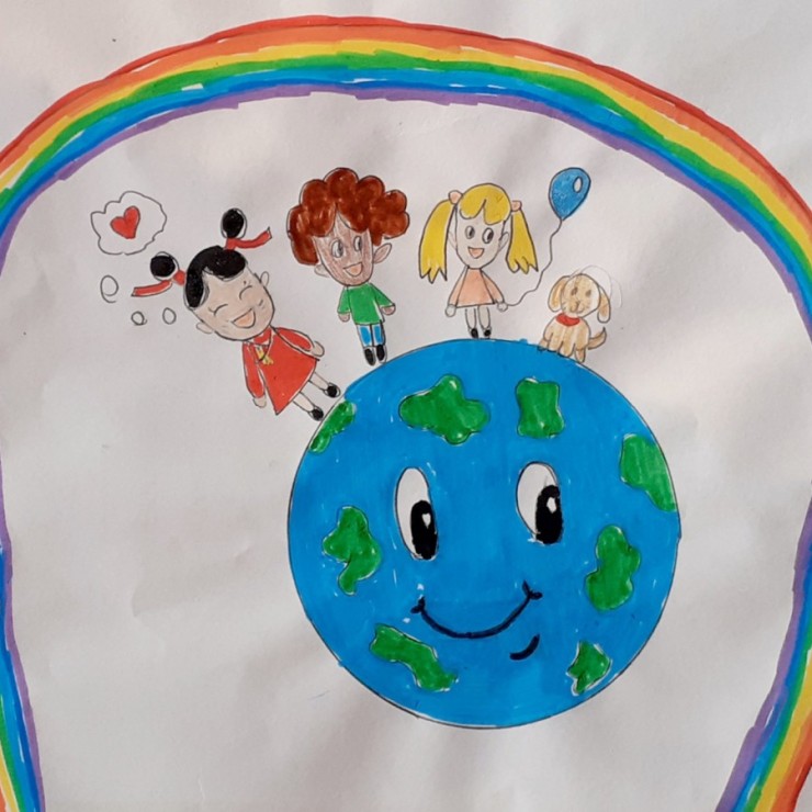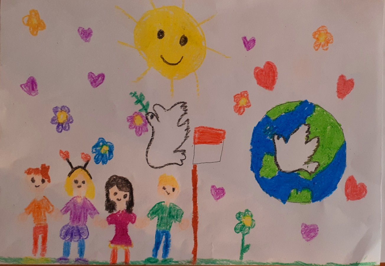Zadanie polegało na wykonaniu pracy PLASTYCZNEJ „POKÓJ ŚWIATU – SZCZĘŚCIE DZIECIOM” w dowolnej technice.