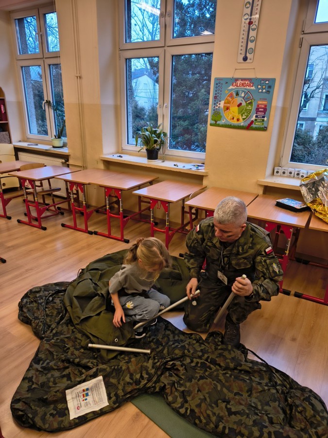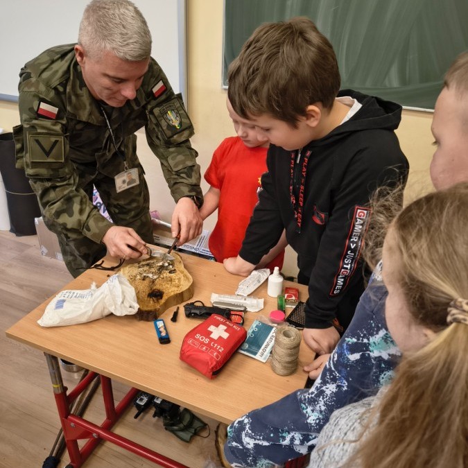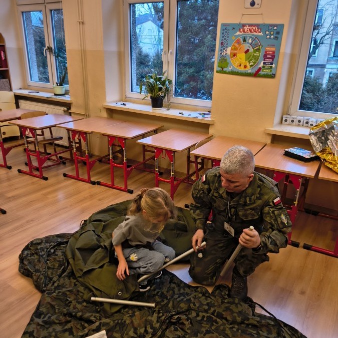 Dzisiejszy dzień był dla uczniów klas 1b i 1c pełen emocji, nowych doświadczeń i praktycznej wiedzy. Naszą szkołę odwiedził wyjątkowy gość – Krzysztof Bejcar, emerytowany żołnierz, który zabrał dzieci w fascynującą podróż do świata wojskowej służby i sztuki przetrwania.