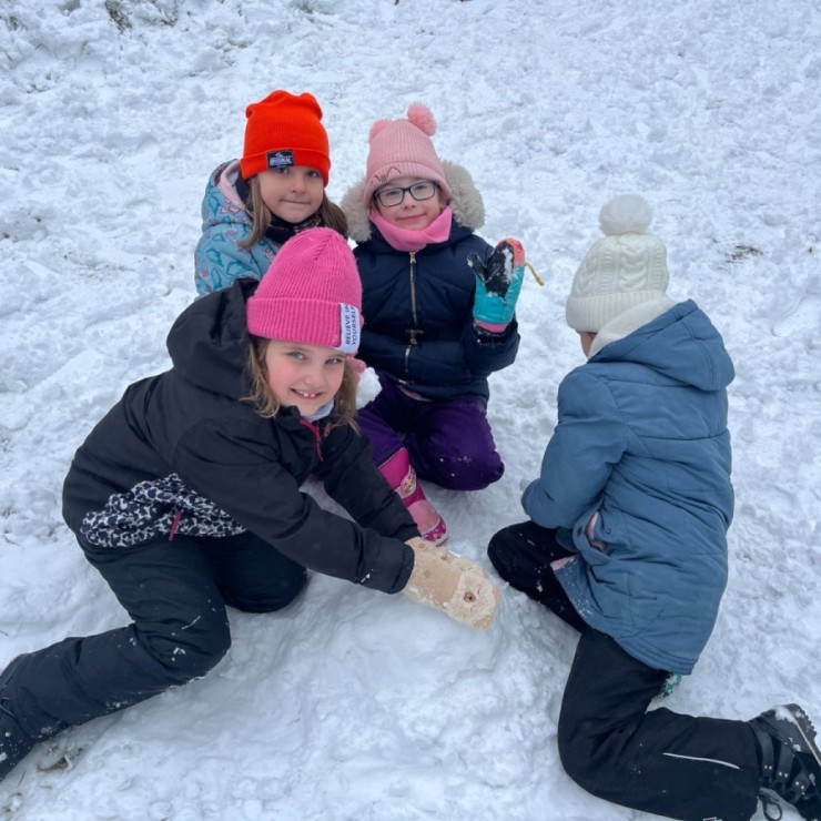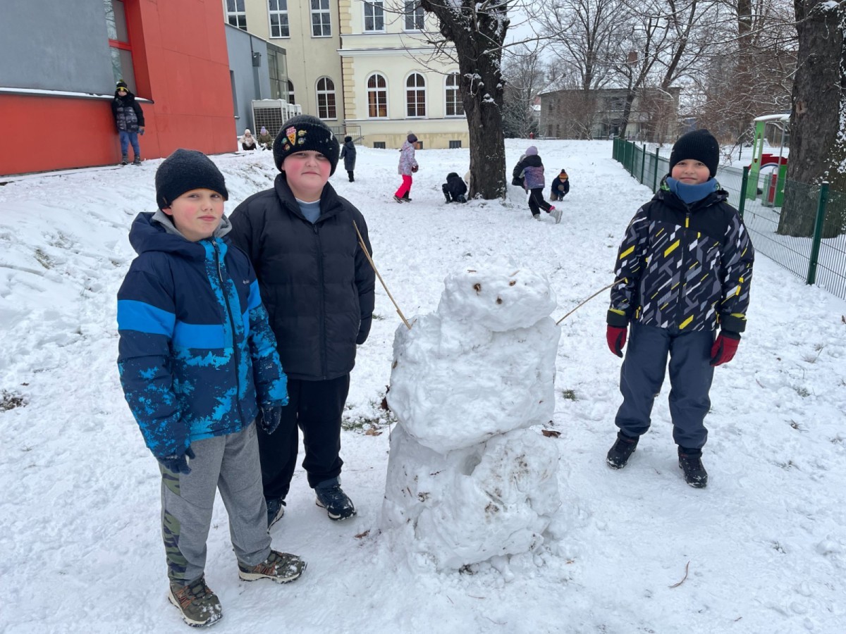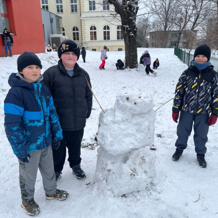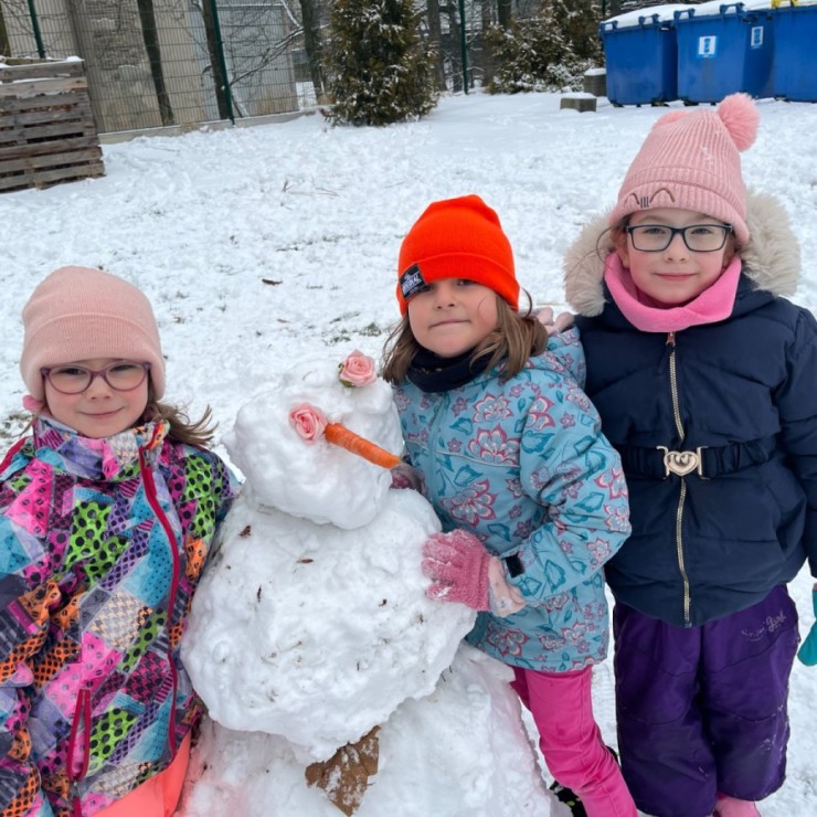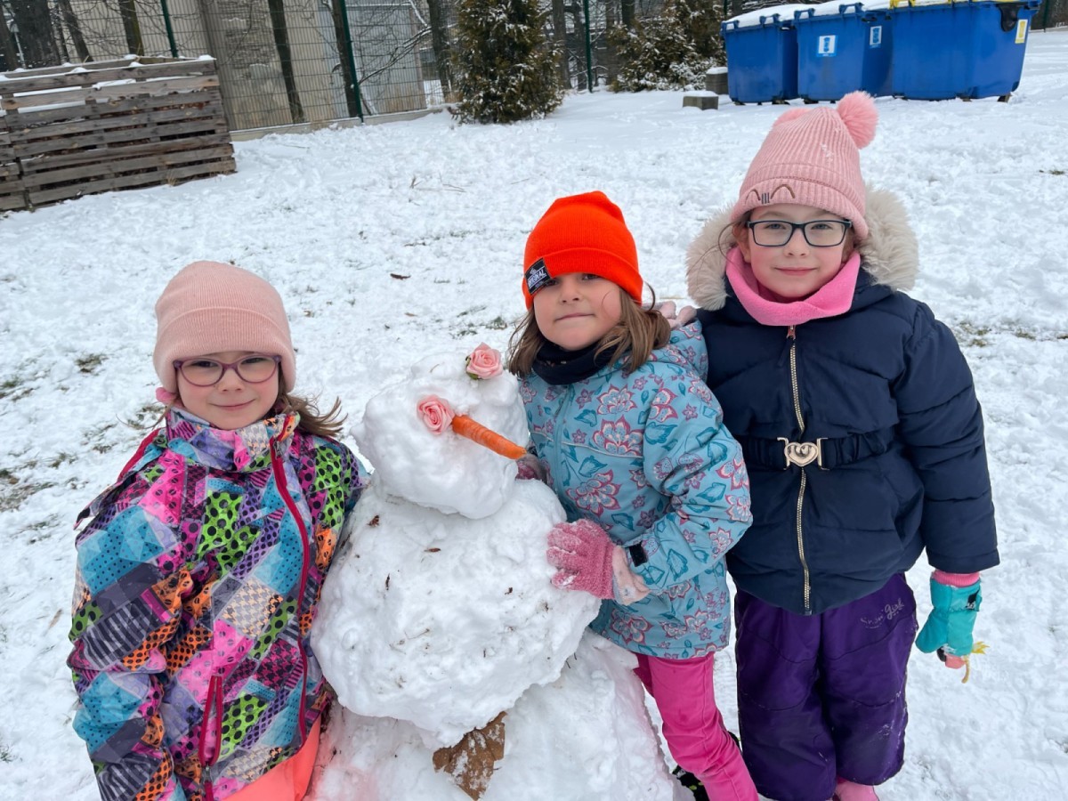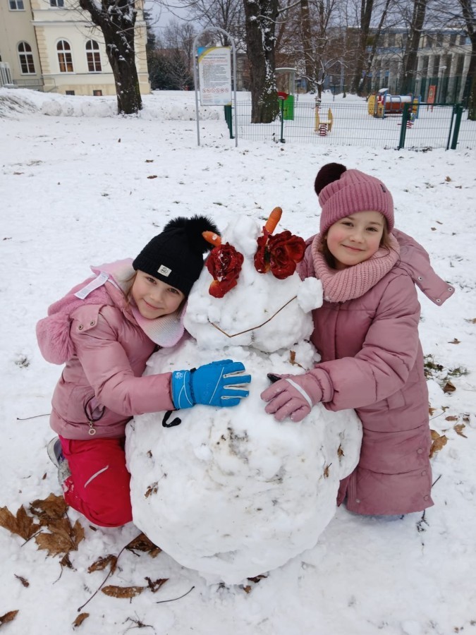 Grudzień upłynął nam bardzo pracowicie - wiele dni przygotowywaliśmy się do tego, aby podczas jasełek kolędy i pastorałki zabrzmiały jak najpiękniej. Nadszedł Nowy Rok, który postanowiliśmy zacząć radośnie i na świeżym, zimowym powietrzu. Śnieg był świetnym materiałem rzeźbiarskim - powstał między innymi bałwan Eugeniusz o różanym spojrzeniu. Oby ten Nowy Rok był dla wszystkich tak wesoły, jak dla nas dzisiejszy dzień.