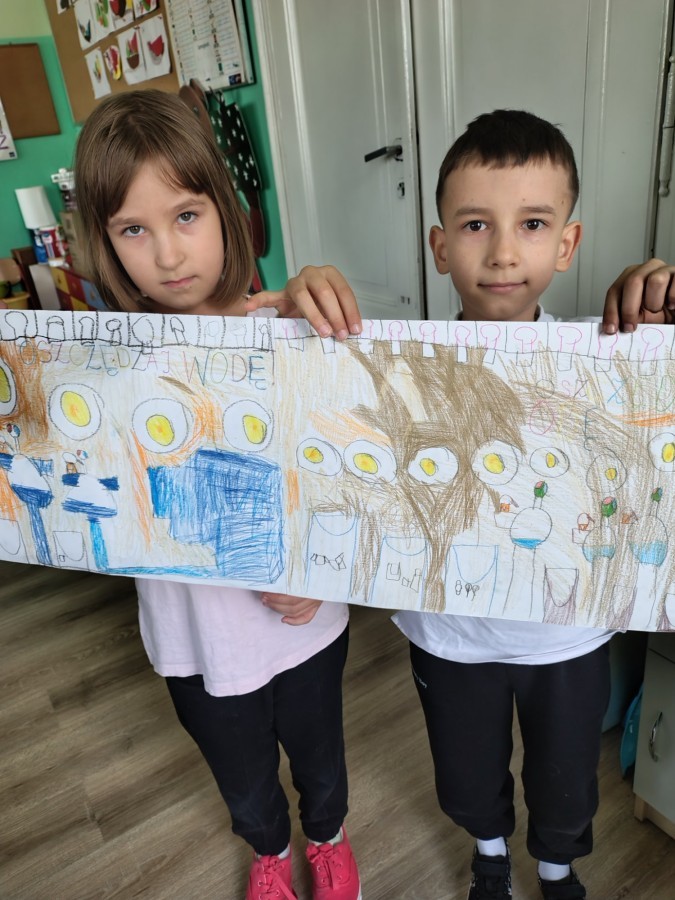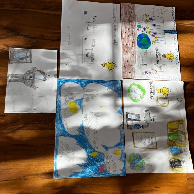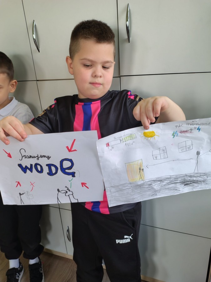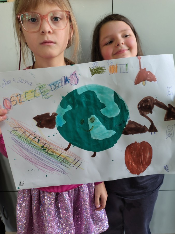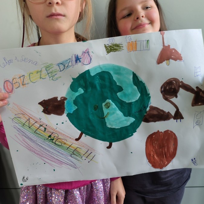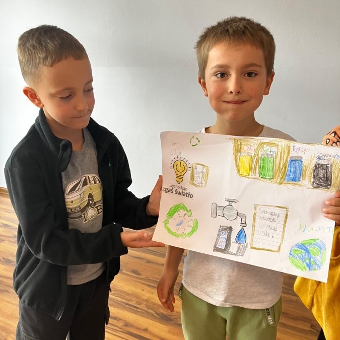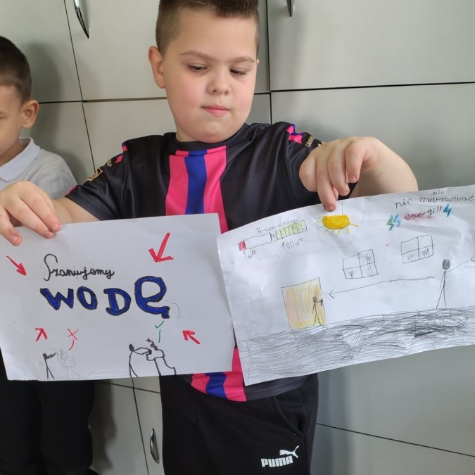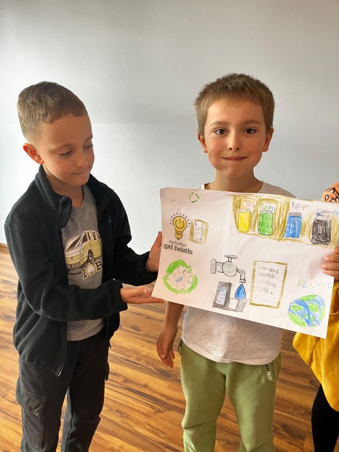 W ramach udziału w konkursie „Szanuj energię chroń klimat” realizując pierwsze zadanie klasa 2 a i 2b przeprowadziła audyt środowiskowy, mający na celu zbadanie wpływu szkoły na środowisko oraz wygenerowanie pomysłów na jego ograniczenie. Uczniowie wspólnie pod czujnym okiem wychowawczyń analizowali różne obszary funkcjonowania placówki w kontekście ekologii i zrównoważonego rozwoju. Przeprowadzone zostały pogadanki, w grupach wykonano plakaty informujące o dobrych praktykach i właściwych działaniach.