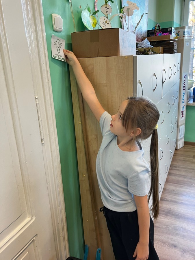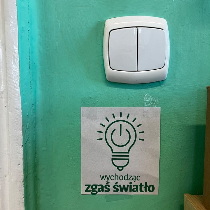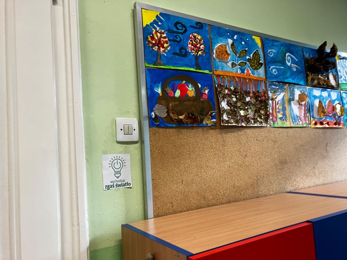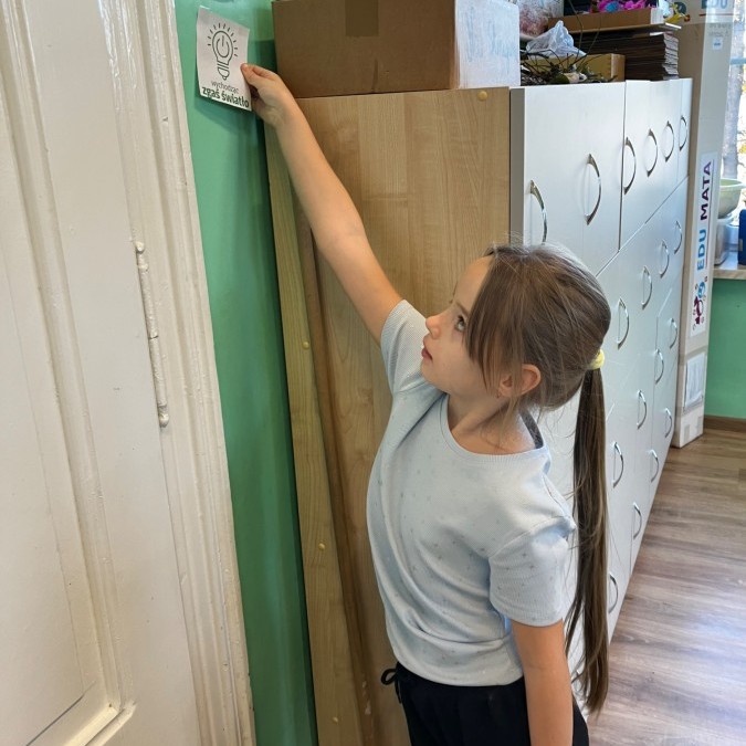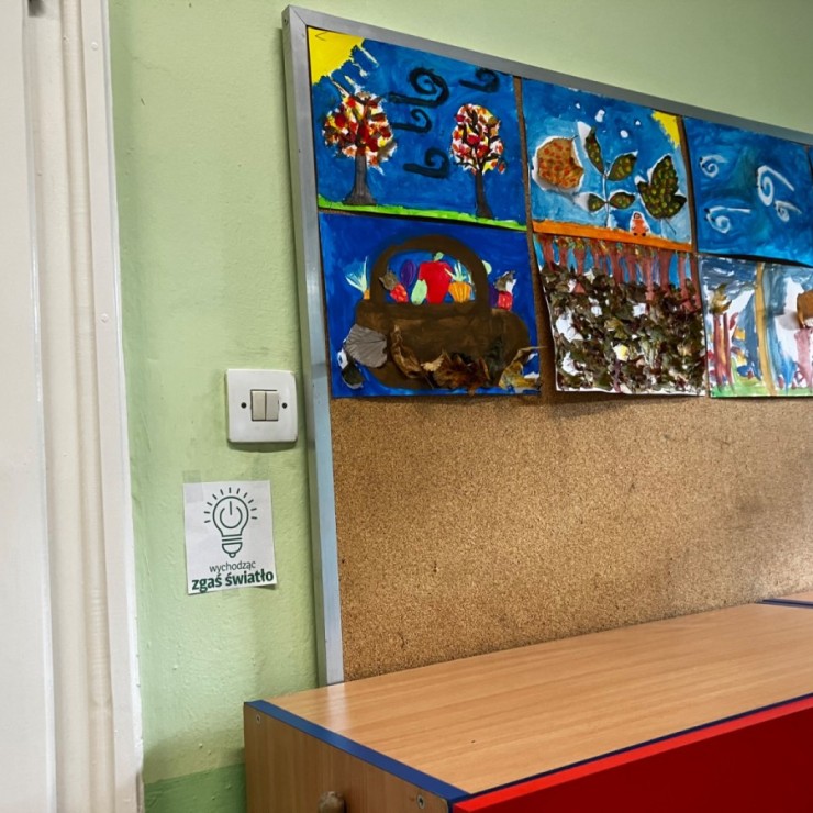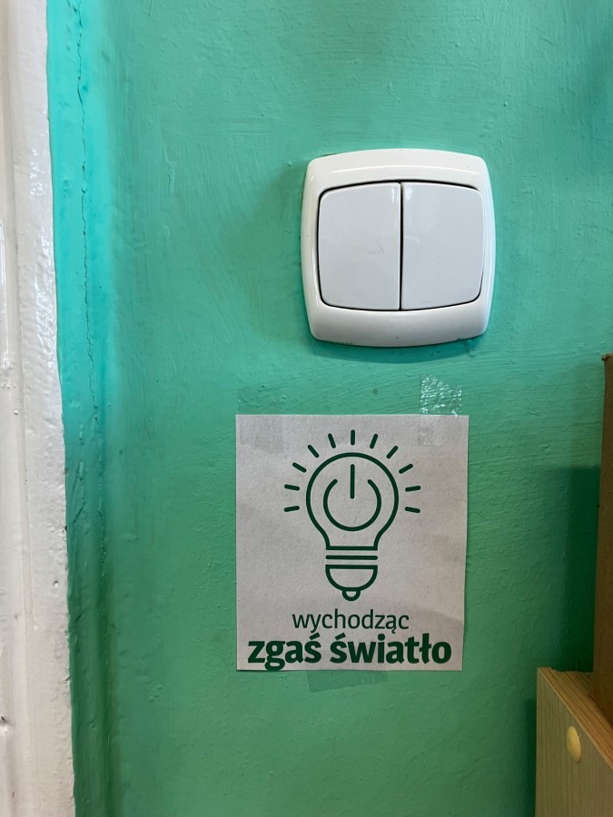 - Regularne przypominanie o gaszeniu światła i wyłączaniu urządzeń po zakończeniu lekcji. Przygotowanie plakatów przypominających o tym. Przyklejenie naklejek przypominających aby zgasić światło przed wyjściem.