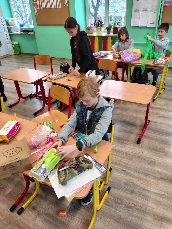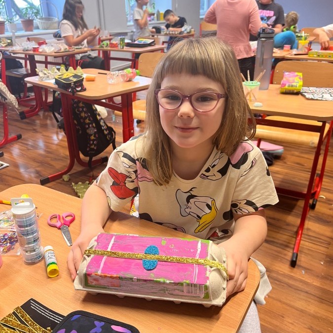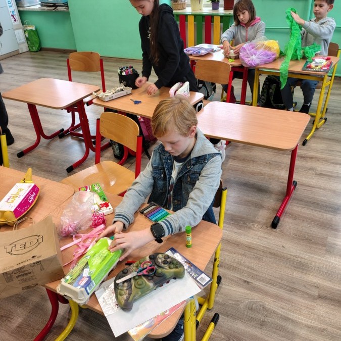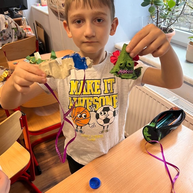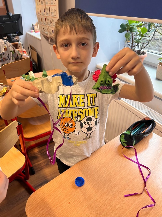 🎨 Na koniec każde z nich stworzyło kreatywną pracę z materiałów wtórnych, pokazując, że wiele przedmiotów może dostać drugie życie!