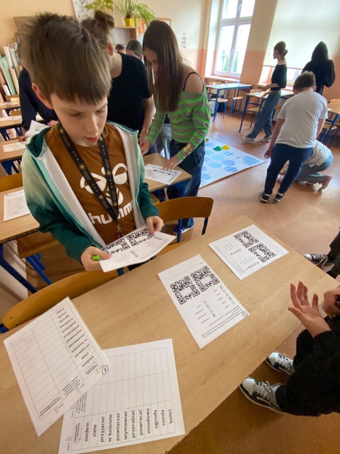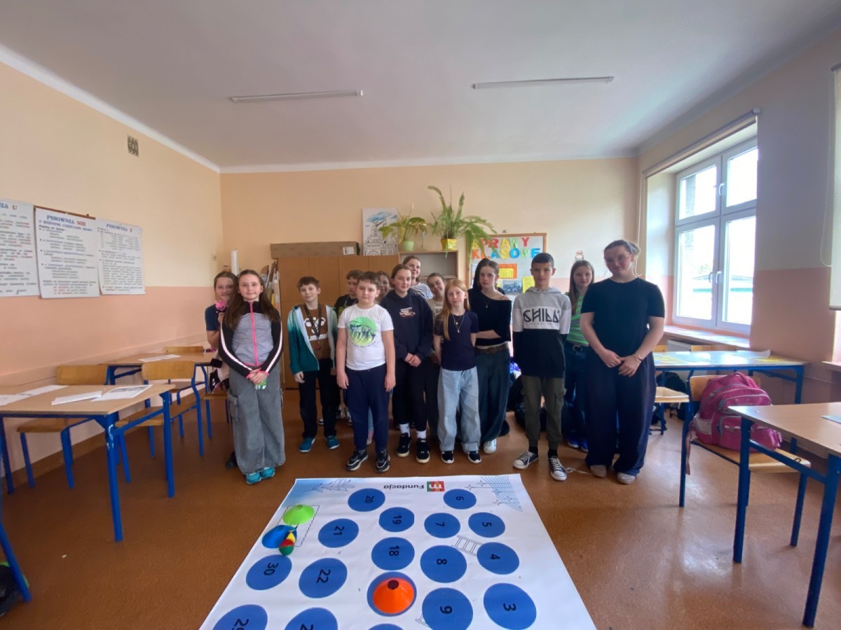 14 kwietnia 2026 roku w naszej szkole odbył się konkurs ortograficzny dla uczniów klas 4–6. Wydarzenie zostało zorganizowane przez nauczycieli języka polskiego i miało na celu rozwijanie umiejętności poprawnego pisania oraz promowania dbałości o język ojczysty. W konkursie wzięło udział osiem dwuosobowych drużyn spośród uczniów wyłonionych wcześniej w eliminacjach klasowych. Uczestnicy zmierzyli się z przygotowaną specjalnie na tę okazję grą planszową, w której każdemu polu odpowiadało inne zadanie ortograficzne, takie jak pisownia „rz” i „ż”, „ó” i „u”, „ch” i „h” oraz wielkich liter. Gra był zacięta i dostarczyła uczestnikom wielu emocji.