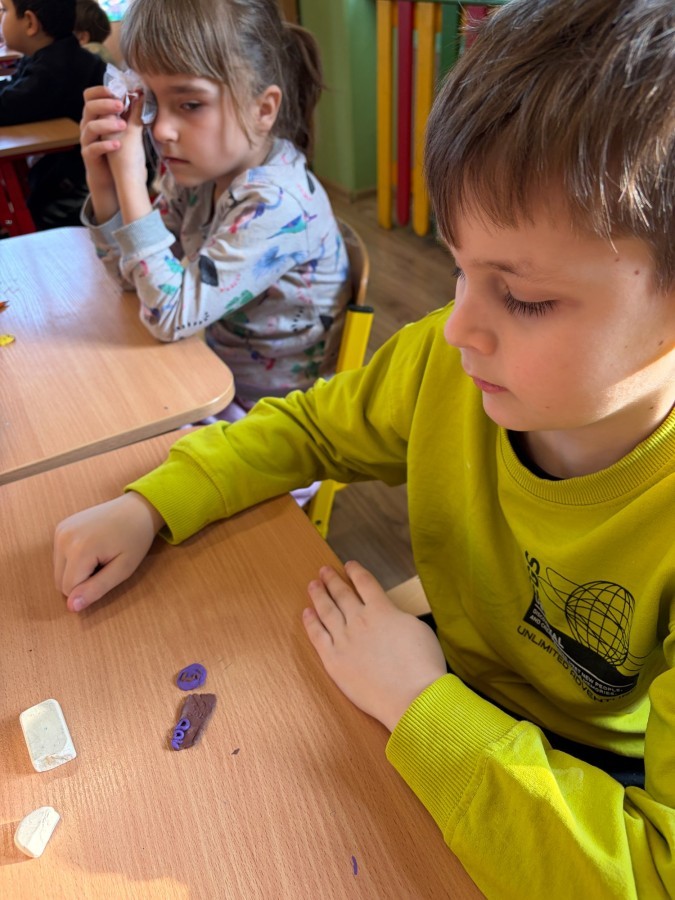 Podczas zajęć nie zabrakło również części praktycznej. Dzieci własnoręcznie tworzyły monety z plasteliny, ćwicząc przy tym zdolności manualne i rozwijając wyobraźnię. Kolejnym zadaniem było zaprojektowanie i wykonanie własnych skarbonek, które pomogą im w nauce oszczędzania.
