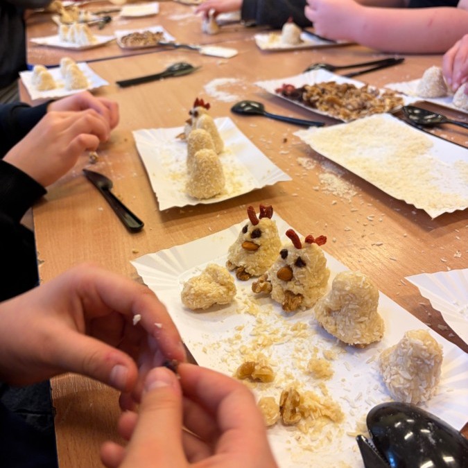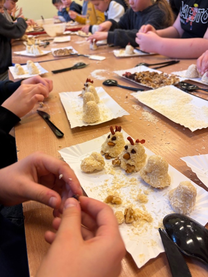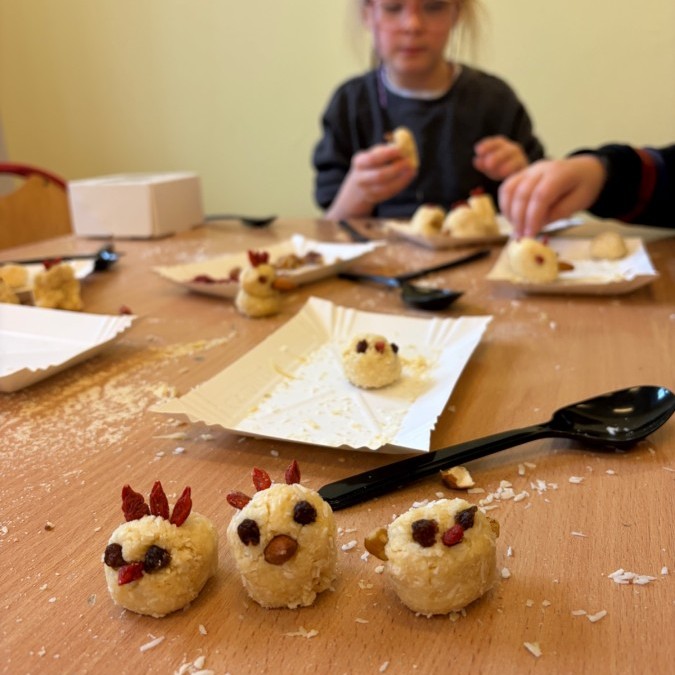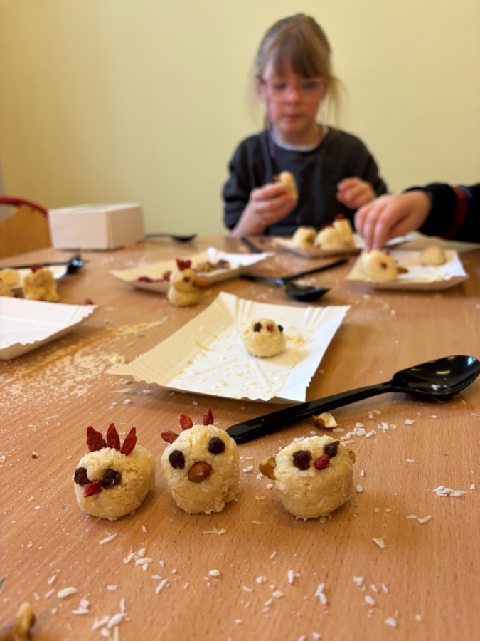 Dziś klasy młodsze wzięły udział w wielkanocnych warsztatach cukierniczych poprowadzonych przez pracownię Różowa Patera. Uczniowie samodzielnie przygotowywali ciasto na bajaderki, a następnie formowali z nich urocze kurczaczki. Warsztaty były nie tylko świetną zabawą, ale również okazją do rozwijania kreatywności i zdolności manualnych.