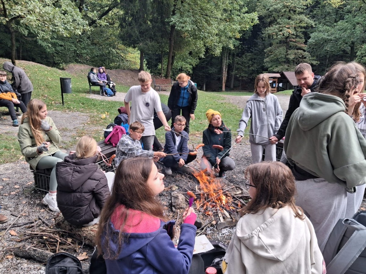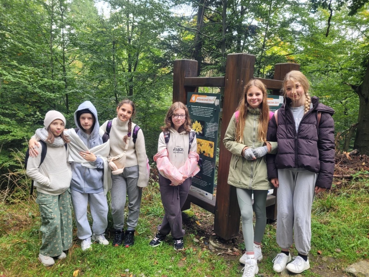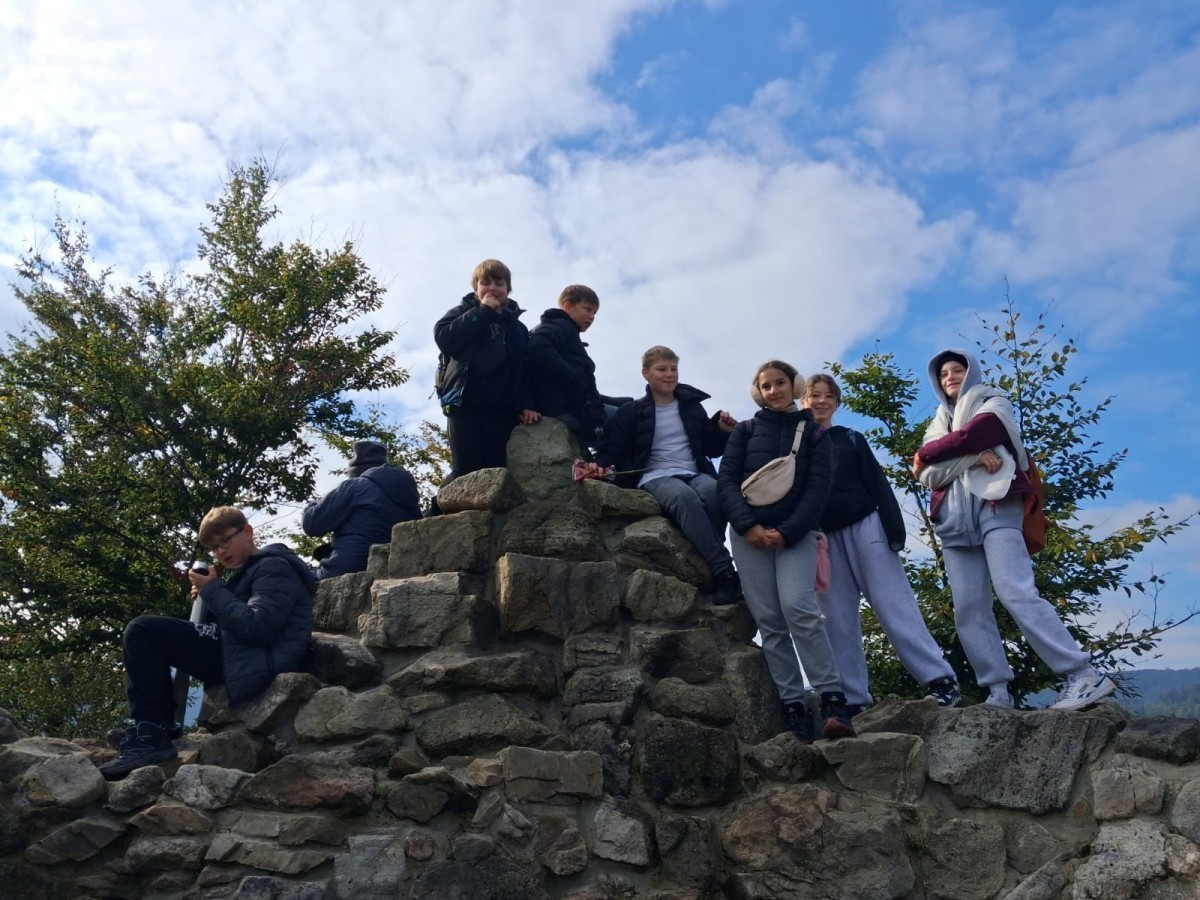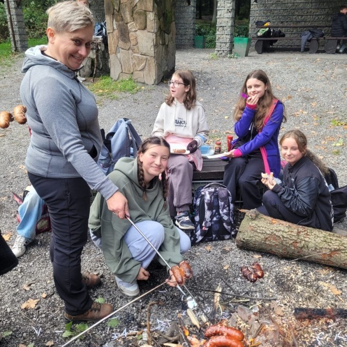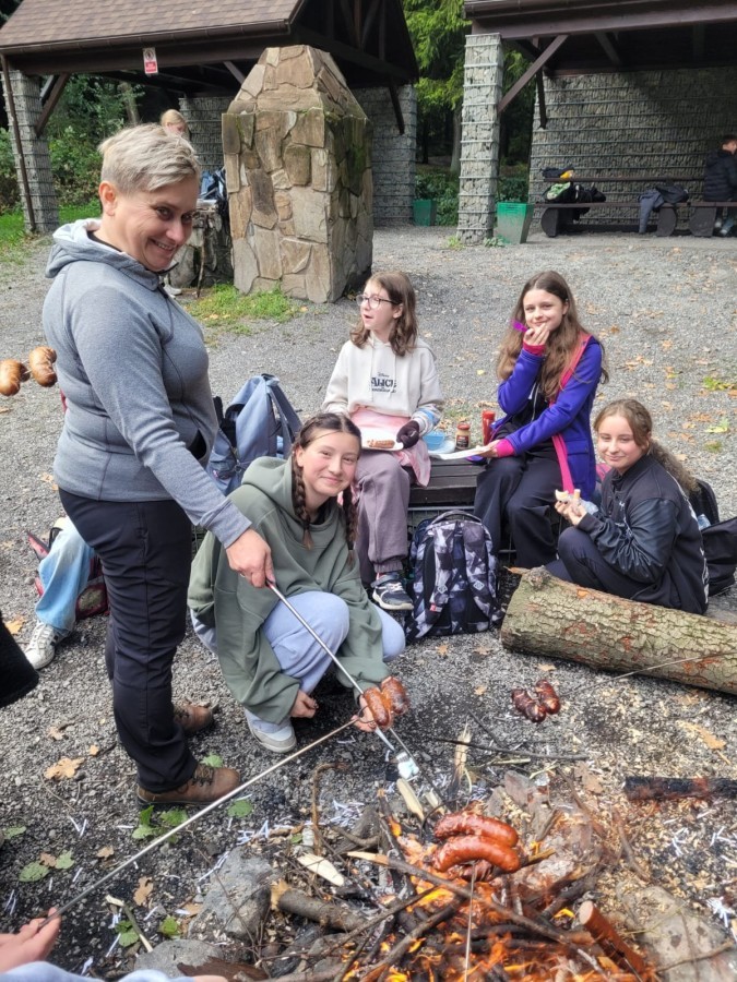 W czwartek 2 października 2025 r. klasy 6a, 7a i 7b wybrały się na wspólną wycieczkę na Kozią Górkę. Naszą wędrówkę rozpoczęliśmy zielonym szlakiem, który zaprowadził nas prosto do schroniska. Tam czekały na uczniów zajęcia w terenie oraz zabawy integracyjne, które dostarczyły mnóstwo radości i okazji do współpracy. Po aktywnym czasie wszyscy usiedliśmy przy ognisku, by wspólnie upiec kiełbaski i odpocząć w miłej atmosferze. W drogę powrotną ruszyliśmy żółtym szlakiem pełni radości i nowych wspomnień.