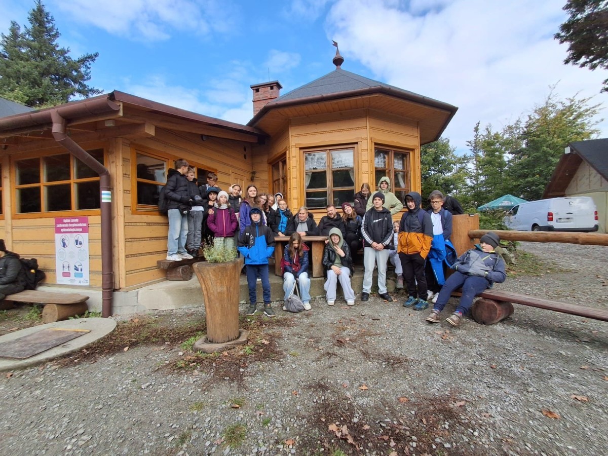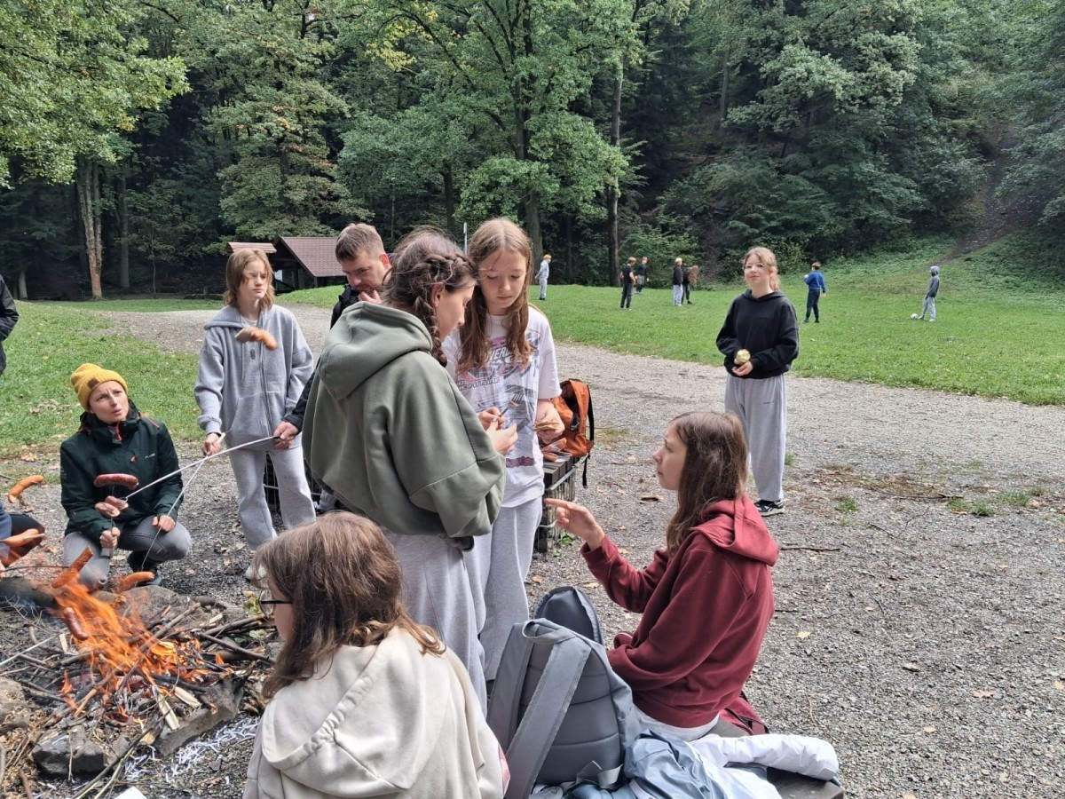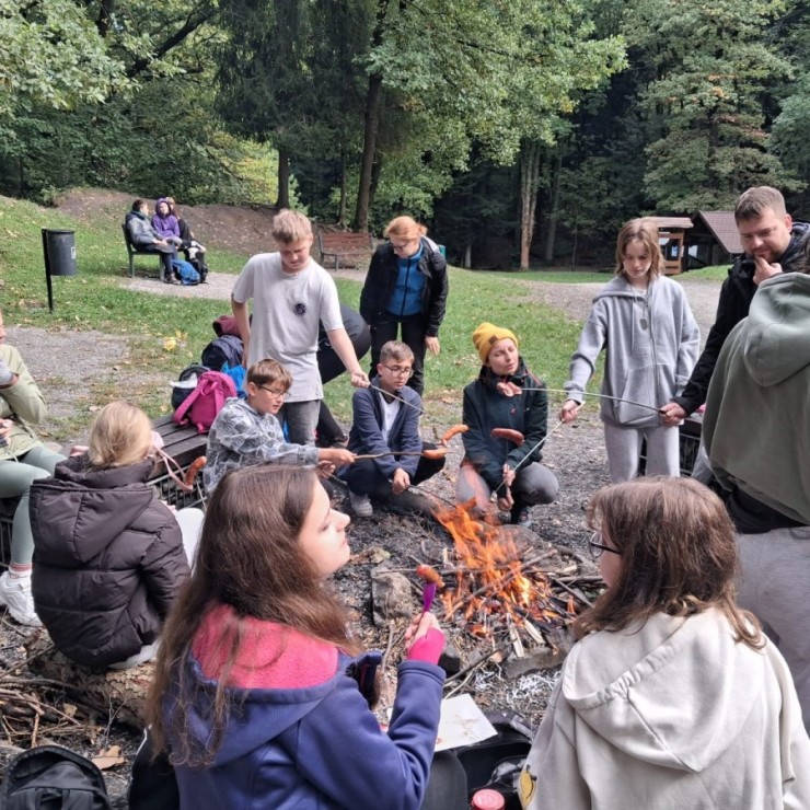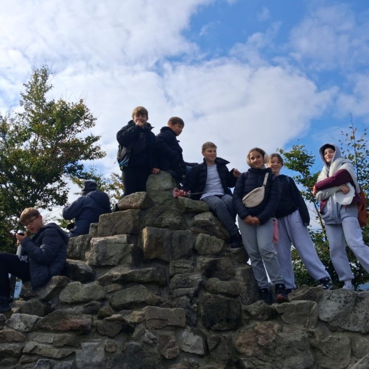 W czwartek 2 października 2025 r. klasy 6a, 7a i 7b wybrały się na wspólną wycieczkę na Kozią Górkę. Naszą wędrówkę rozpoczęliśmy zielonym szlakiem, który zaprowadził nas prosto do schroniska. Tam czekały na uczniów zajęcia w terenie oraz zabawy integracyjne, które dostarczyły mnóstwo radości i okazji do współpracy. Po aktywnym czasie wszyscy usiedliśmy przy ognisku, by wspólnie upiec kiełbaski i odpocząć w miłej atmosferze. W drogę powrotną ruszyliśmy żółtym szlakiem pełni radości i nowych wspomnień.