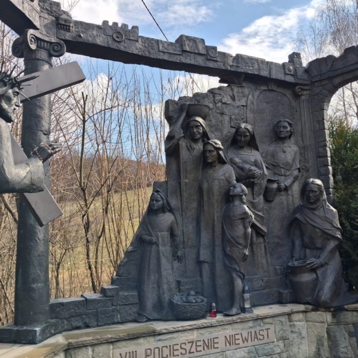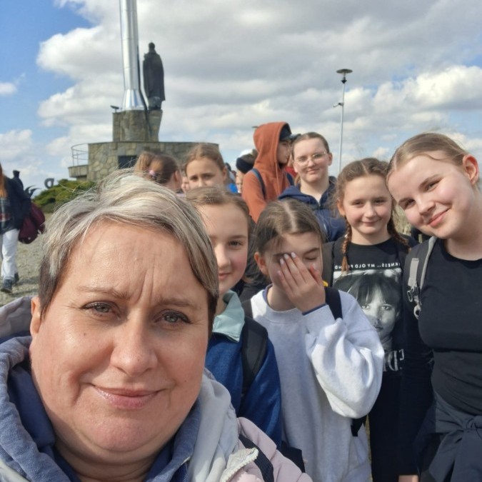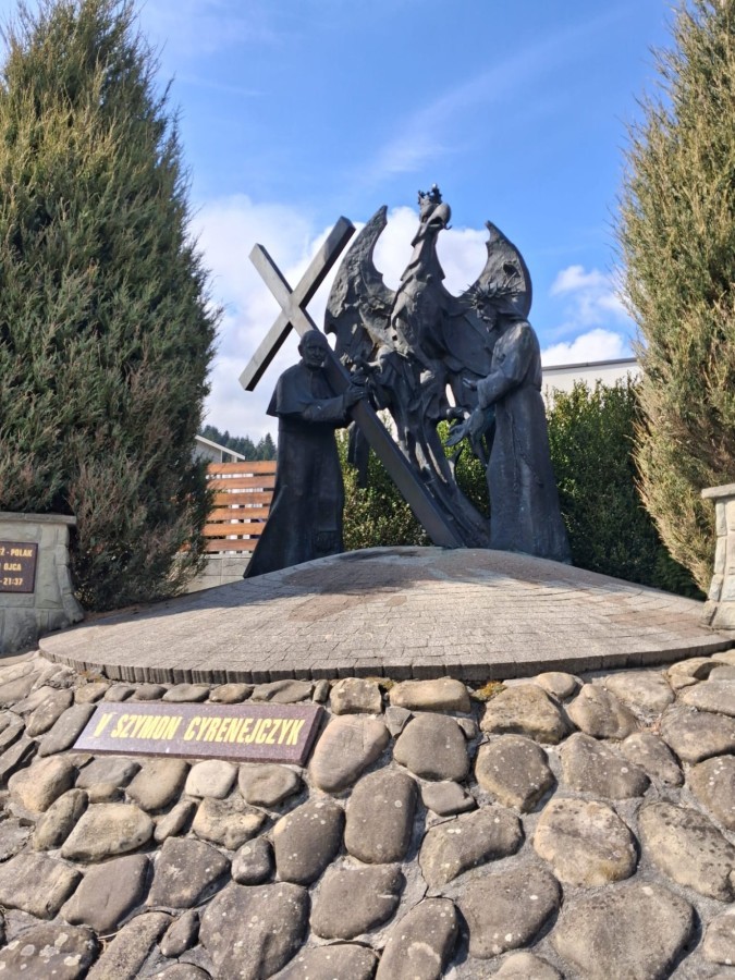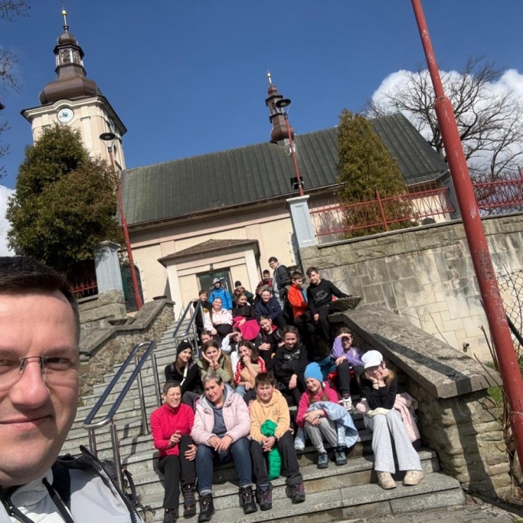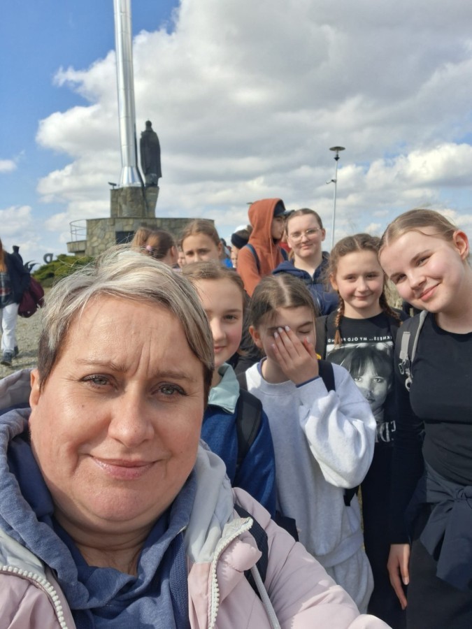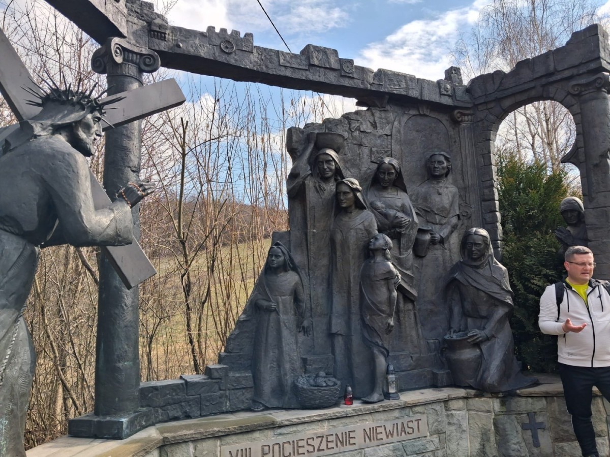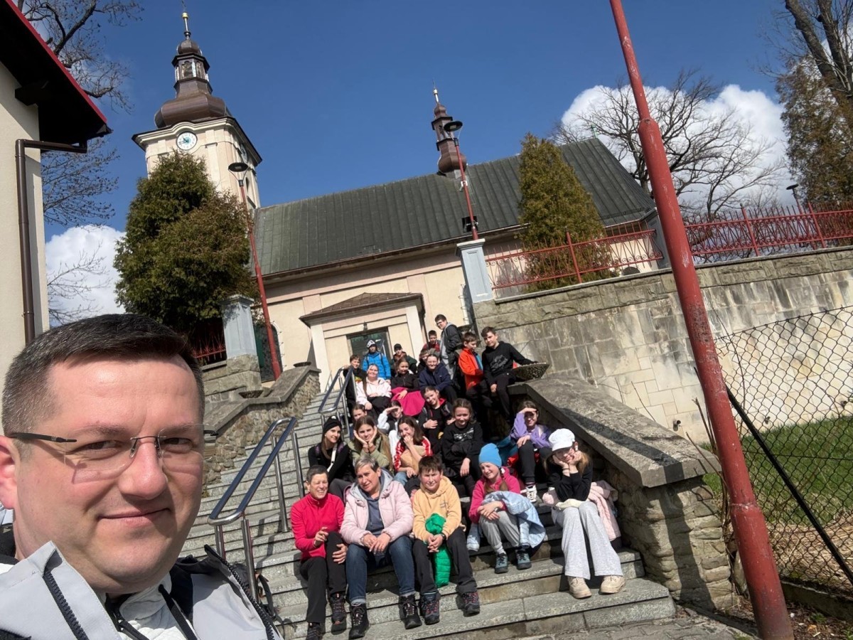 Pierwszy dzień wiosny przywitał naszą ekipę z koła turystycznego w wyjątkowy sposób. Zamiast tradycyjnego topienia marzanny, wybraliśmy się na Golgotę Beskidów, czyli wzgórze Matyska w Radziechowach. Wyprawa była połączeniem aktywnego marszu z głębokim przeżyciem duchowym. Choć Beskidy dopiero budziły się z zimowego snu, a wiatr momentami przypominał o kończącej się mroźnej aurze, panorama rozciągająca się ze szczytu na Kotlinę Żywiecką i okoliczne pasma zapierała dech w piersiach. Najważniejszym punktem programu była jednak Droga Krzyżowa. Kolejne stacje, będące prawdziwymi dziełami sztuki, mijaliśmy w skupieniu, słuchając rozważań prowadzonych przez naszego charyzmatycznego księdza. Jego słowa, pełne pasji i trafnych odniesień do życia młodych ludzi, niosły się po górskich zboczach, nadając wędrówce zupełnie inny wymiar. To nie był zwykły spacer – to była lekcja uważności i wspólnoty w pięknych okolicznościach przyrody. Do domów wróciliśmy z przewietrzonymi głowami, naładowani pozytywną energią i gotowi na kolejne wiosenne wyzwania na szlaku.