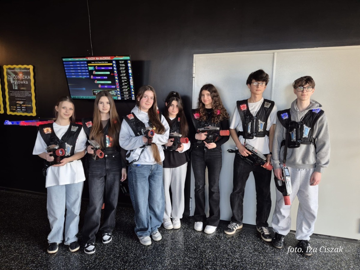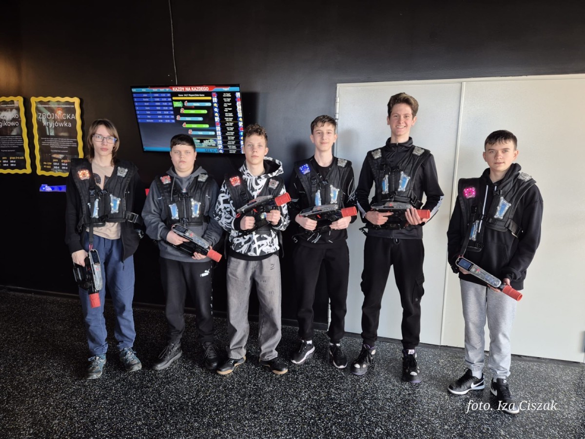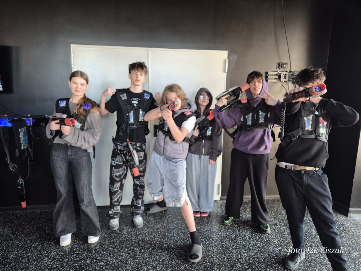 Klasa 8a z okazji Dnia Kobiet wybrała się do ArcadeBee w Sferze. Uczniowie wzięli udział w grze w laser tag, która dostarczyła wszystkim dużo emocji i dobrej zabawy. Wspólna rywalizacja przebiegała w świetnej atmosferze, a uczniowie wykazali się sprytem, współpracą i dużym zaangażowaniem. Wyjście było doskonałą okazją do integracji klasy i spędzenia czasu w aktywny, radosny sposób.