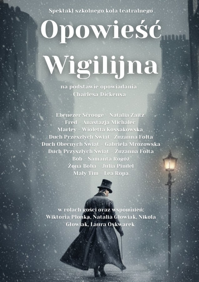 W przedświątecznym czasie uczniowie koła teatralnego zaprosili nas do świata „Opowieści wigilijnej” – historii o przemianie serca, uważności na drugiego człowieka i sile dobra, które potrafi rozświetlić nawet najciemniejszy moment.